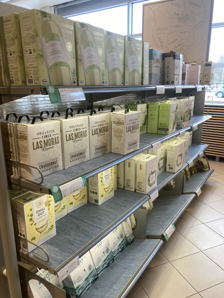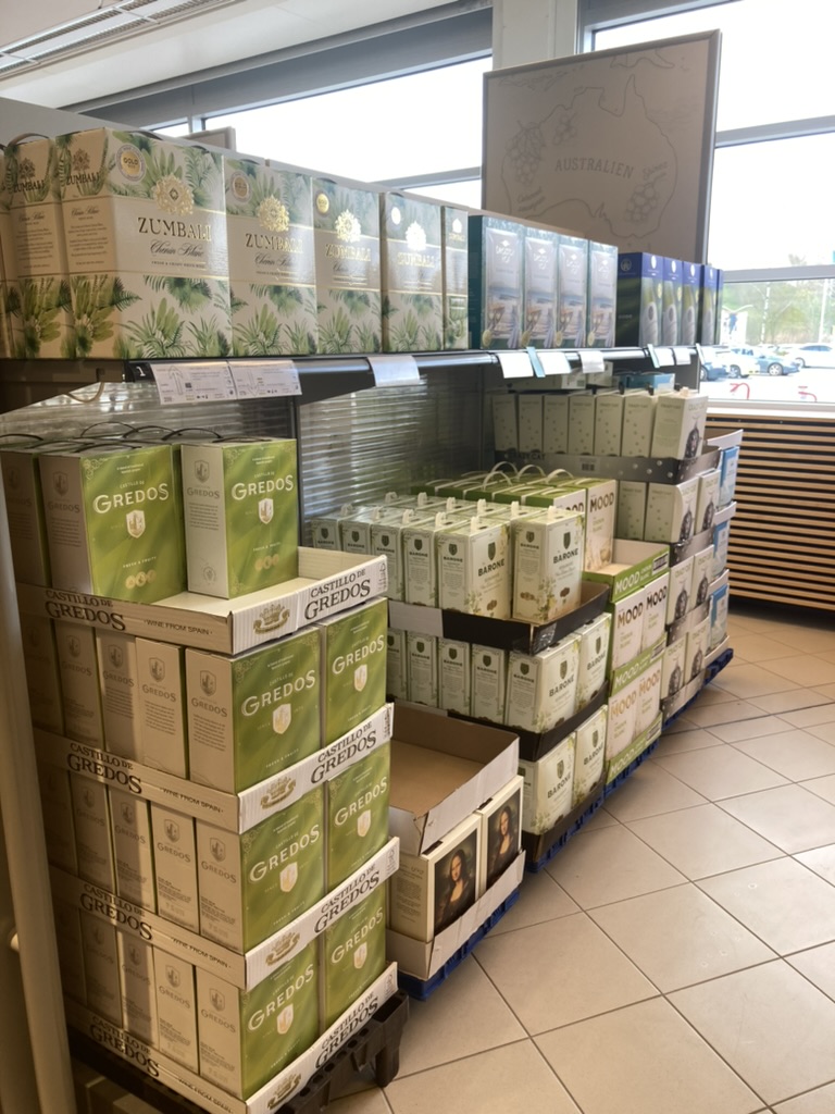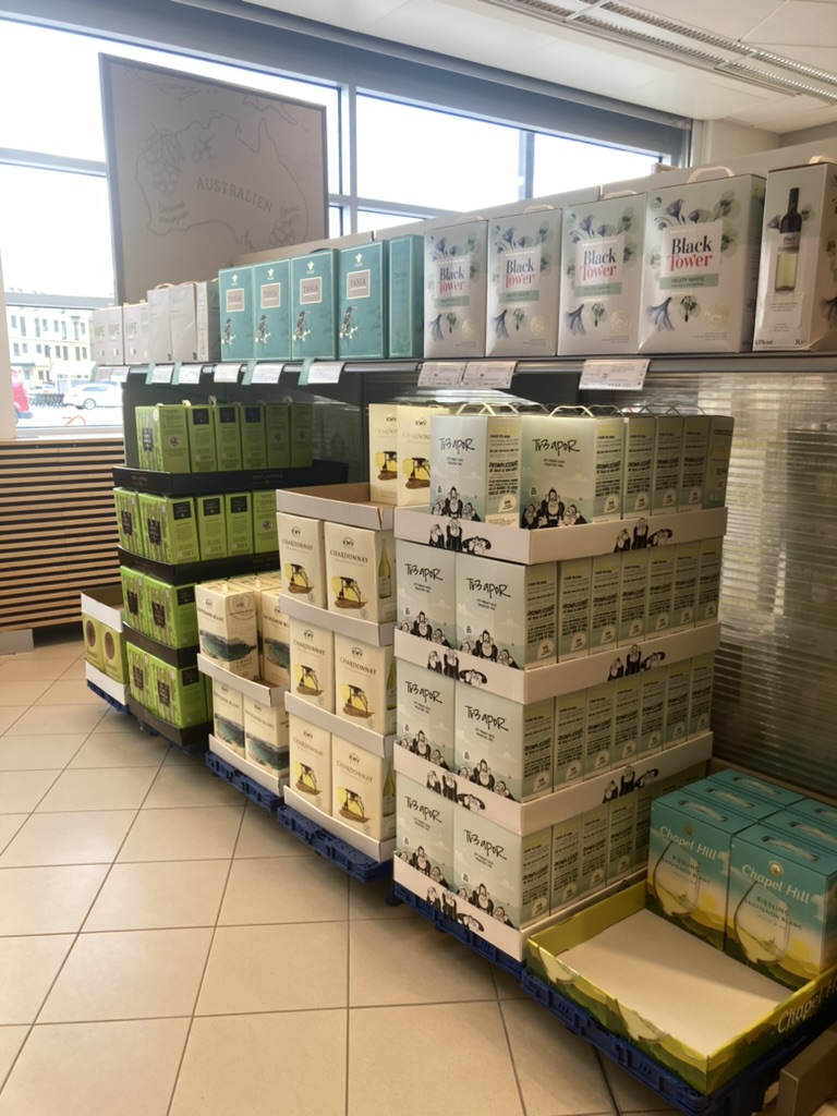 매장에 진열된 Bag In Box 대부분 와인이다.
